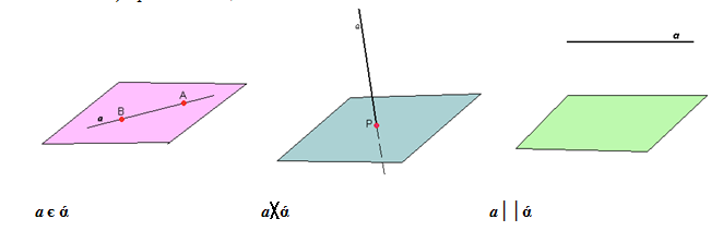 1)Пряма і площина мають безліч спільних точок; 2) Пряма і площина мають одну спільну точку; 3) Пряма і площина не мають спільних точок.